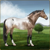 Name: RMA Bramble SPP 86Age: 11 Stallion Color: Grullo Varnish Snowflake Appaloosa Breed: Sport Horse Foal Rating: S/P/P |  |