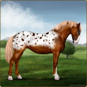 Name: ♧GeorgeAge: 12 Stallion Color: Chestnut Blanket Appaloosa Breed: Knabstrupper Foal Rating: P/S/S |  |