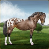 Name: Weekend Farmer PEPAge: 3 Stallion Color: Brown Dun Near Leopard Appaloosa Breed: Knabstrupper Foal Rating: P/E/P |  |
