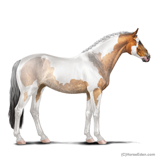 Color: Copper Bay Roan Dun Tobiano Sabino Rabicano