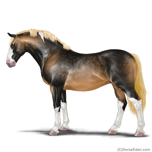 Color: Flaxen Red Dun Tobiano Sabino