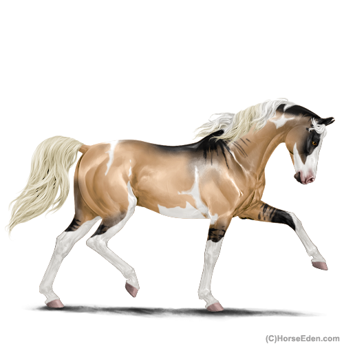 Color: Flaxen Red Dun Tobiano Sabino