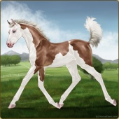 Name: ✦ Marvelous MomentAge: 14 Mare Color: Amber Creme Pearl Tobiano Splash White Sabino Breed: Thoroughbred Foal Rating: P/P/P |  |