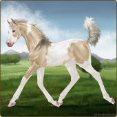 Name: ⁑ Marta ZZToSplSbAge: 0 Mare Color: Silver Buckskin Tobiano Splash White Sabino Breed: Thoroughbred Foal Rating: P/P/P |  |