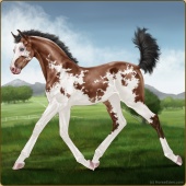 Name: § Victory Prize §Age: 4 Mare Color: Black Tobiano Frame Breed: Appendix Quarter Horse Foal Rating: P/E/P Bravery Rating: Sub-Par |  |