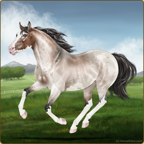 Color: Mahogany Bay Roan Dun Sabino