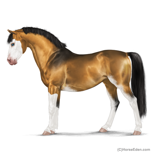Color: Golden Bay Dun Splash White Sabino