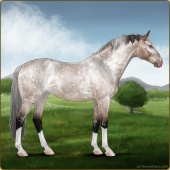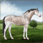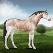 Name: foal 5313134Age: 9 Stallion Color: Dunskin Roan Splash White Breed: Sport Horse |  |