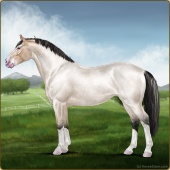 Name: foal 21702601Age: 10 Stallion Color: Silver Light Bay Dun Splash White Breed: Sport Horse |  |