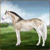 Name: foal 94535687Age: 7 Stallion Color: Dunskin Pearl Splash White Sabino Breed: Sport Horse |  |