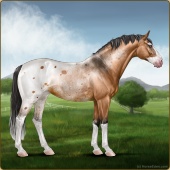 Name: foal 73637477Age: 11 Stallion Color: Buckskin Splash White Leopard Appaloosa Breed: Sport Horse |  |