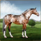 Name: foal 24689384Age: 15 Stallion Color: Light Bay Splash White Varnish Appaloosa Breed: Sport Horse |  |