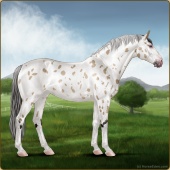 Name: foal 95057444Age: 9 Mare Color: Perlino Splash White Frost Appaloosa Breed: Sport Horse |  |