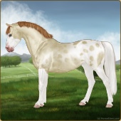 Name: foal 12469298Age: 13 Stallion Color: Perlino Roan Dun Splash White Varnish Snowflake Appaloosa Breed: Sport Pony |  |