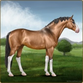 Name: foal 69871376Age: 7 Stallion Color: Buckskin Pearl Splash White Breed: Sport Horse |  |