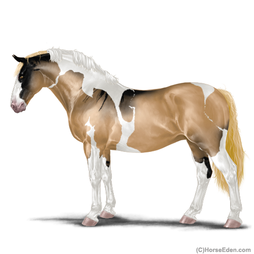 Color: Flaxen Red Dun Tobiano Sabino