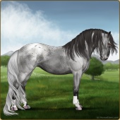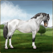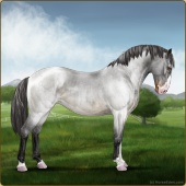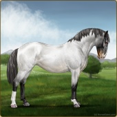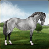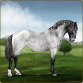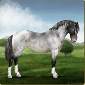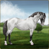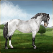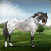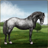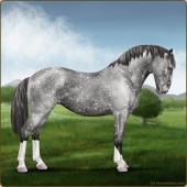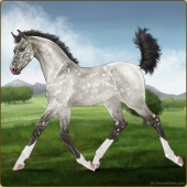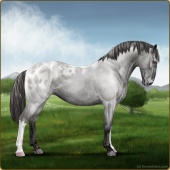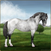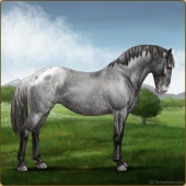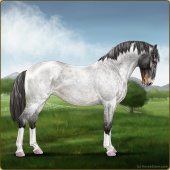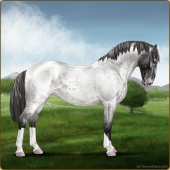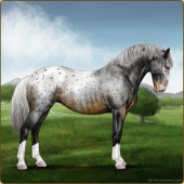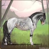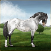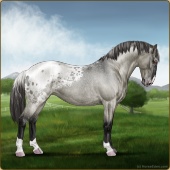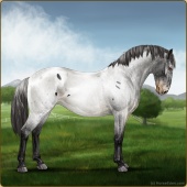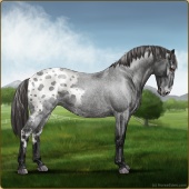 Name: Wish GrantedAge: 9 Stallion Color: Smokey Blue Roan Blanket Appaloosa Breed: Knabstrupper Foal Rating: W/E/E For Sale!For Breeding! |  |