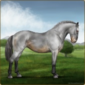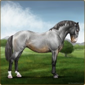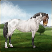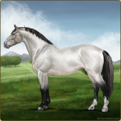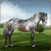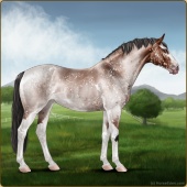 Name: Soter X FW EEEAge: 7 Mare Color: Smokey Blue Roan Frost Appaloosa Breed: Knabstrupper Foal Rating: E/E/E |  |