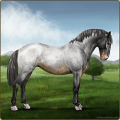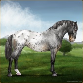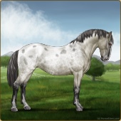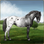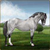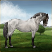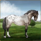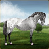 Name: ⚶ AlfalfaAge: 12 Gelding Color: Smokey Blue Roan Blanket Appaloosa Breed: Knabstrupper Foal Rating: E/E/E |  |