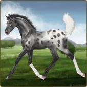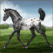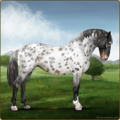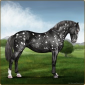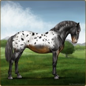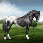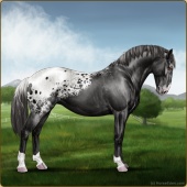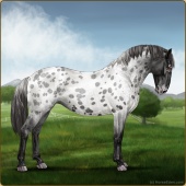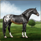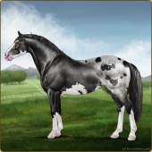 Name: Soterfor WEEAge: 11 Stallion Color: Black Varnish Blanket Appaloosa Breed: Knabstrupper Foal Rating: W/E/E |  |