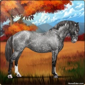 Name: Warriors Grey Skye EEE-SubAge: 9 Mare Color: Blue Roan Snowflake Appaloosa Breed: Knabstrupper Foal Rating: E/E/E Bravery Rating: Sub-Par |  |