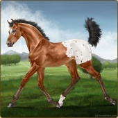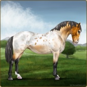 Name: Silver Carrot -PEE-Age: 3 Mare Color: Light Bay Roan Blanket Appaloosa Breed: Knabstrupper Foal Rating: P/E/E For Breeding! |  |