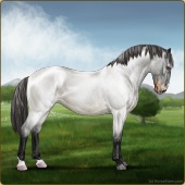 Name: Solar Uptown 184 EWEAge: 12 Gelding Color: Grullo Varnish Appaloosa Breed: Knabstrupper Foal Rating: E/W/E Bravery Rating: Sub-Par |  |