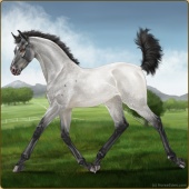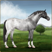 Name: So GracefulAge: 7 Mare Color: Smokey Blue Roan Frost Appaloosa Breed: Knabstrupper Foal Rating: W/E/E |  |