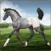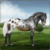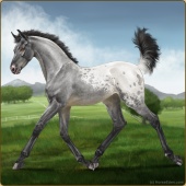 Name: Ѧ Raven FeatherAge: 6 Gelding Color: Smokey Blue Roan Near Leopard Appaloosa Breed: Knabstrupper Foal Rating: E/E/E |  |
