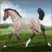 Name: ﮐ Solaris EAge: 2 Mare Color: Blue Roan Splash White Varnish Appaloosa Breed: Sport Horse Foal Rating: E/E/E |  |