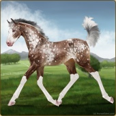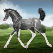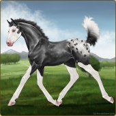 Name: Diva Aura ツAge: 2 Stallion Color: Black Frame Frost Appaloosa Breed: Sport Horse Foal Rating: P/E/P |  |