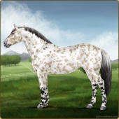 Name: 41882757Age: 4 Stallion Color: Blood Bay Rabicano Leopard Appaloosa Breed: Irish Sport Horse Foal Rating: W/A/Sub |  |