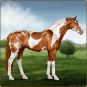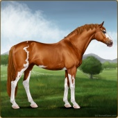 Name: 40552120Age: 8 Mare Color: Chestnut Splash White Sabino Breed: Sport Horse Foal Rating: S/E/S For Breeding! |  |