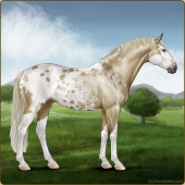 Name: 40306804Age: 9 Mare Color: Silver Classic Champagne Blanket Appaloosa Breed: Sport Horse Foal Rating: A/E/S |  |