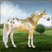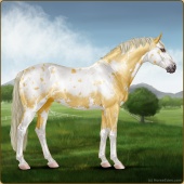 Name: 40512031Age: 8 Mare Color: Gold Champagne Splash White Snowflake Appaloosa Breed: Sport Horse Foal Rating: S/E/S |  |