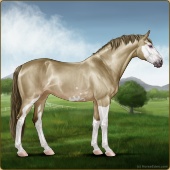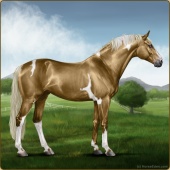 Name: 39935843Age: 10 Gelding Color: Gold Creme Tobiano Splash White Sabino Breed: Sport Horse Foal Rating: A/E/S |  |