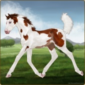 Name: 908 X 1644 194Age: 2 Mare Color: Brown Buckskin Tobiano Splash White Sabino Appaloosa Breed: Irish Sport Horse Foal Rating: A/E/S |  |