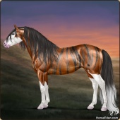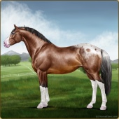 Name: ✧RB 1/6 Chrome MiracleAge: 4 Stallion Color: Blood Bay Roan Splash White Frost Appaloosa Breed: Irish Sport Horse Foal Rating: E/E/E |  |