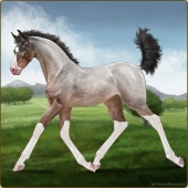 Name: ✧RB 1/2 Miracle ShockAge: 3 Stallion Color: Silver Light Bay Roan Splash White Rabicano Appaloosa Breed: Irish Sport Horse Foal Rating: P/E/E |  |
