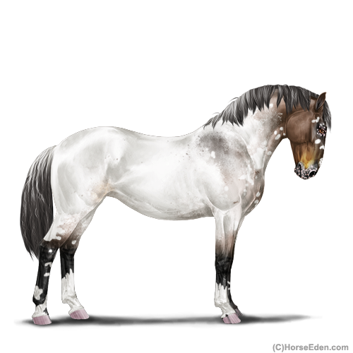 Color: Brown Roan Dun Near Fewspot Appaloosa