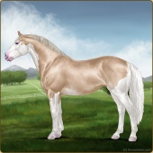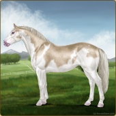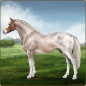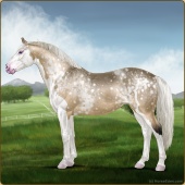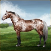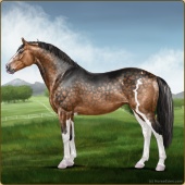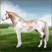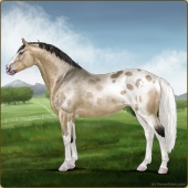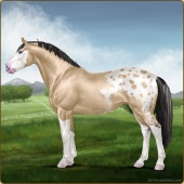 Name: Rosebud Itachi PEW 1/8Age: 7 Mare Color: Silver Buckskin Roan Splash White Snowflake Appaloosa Breed: Irish Sport Horse Foal Rating: P/E/W |  |