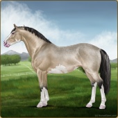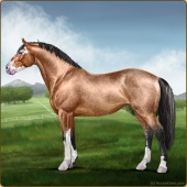 Name: $Golden Dream EEEAge: 7 Mare Color: Buckskin Splash White Breed: Sport Horse Foal Rating: E/E/E |  |