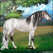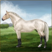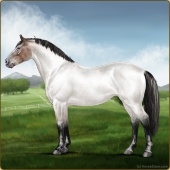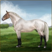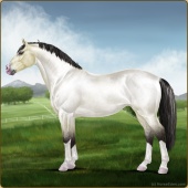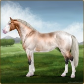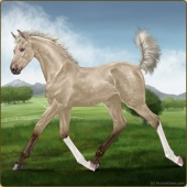 Name: Illusive HalcyonAge: 2 Mare Color: Silver Buckskin Roan Breed: Irish Sport Horse Foal Rating: E/E/E |  |