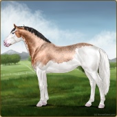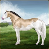 Name: SaradaAge: 10 Mare Color: Silver Buckskin Roan Splash White Sabino Breed: Irish Sport Horse Foal Rating: E/W/W |  |