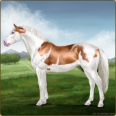 Name: SB Angelic Burden|EWEAge: 4 Stallion Color: Golden Bay Roan Splash White Sabino Breed: Irish Sport Horse Foal Rating: E/W/E Bravery Rating: Sub-Par For Breeding! |  |