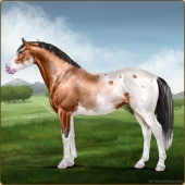 Name: Dragons itachi EEE 1/4Age: 4 Mare Color: Dunskin Roan Splash White Sabino Varnish Appaloosa Breed: Irish Sport Horse Foal Rating: E/E/E |  |