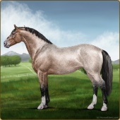 Name: Itach X MVKra 186Age: 10 Mare Color: Silver Buckskin Roan Breed: Irish Sport Horse Foal Rating: W/E/E |  |