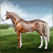 Name: MaderaAge: 11 Stallion Color: Silver Mahogany Bay Roan Dun Blanket Appaloosa Breed: Irish Sport Horse Foal Rating: W/W/W For Breeding! |  |