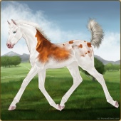 Name: Asteroid Itachi PEE 1/3Age: 0 Mare Color: Silver Golden Bay Splash White Sabino Blanket Appaloosa Breed: Irish Sport Horse Foal Rating: P/E/E |  |