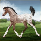 Name: ℘ Malibu BarbieAge: 2 Mare Color: Silver Buckskin Roan Splash White Sabino Varnish Appaloosa Breed: Sport Horse Foal Rating: P/E/E |  |